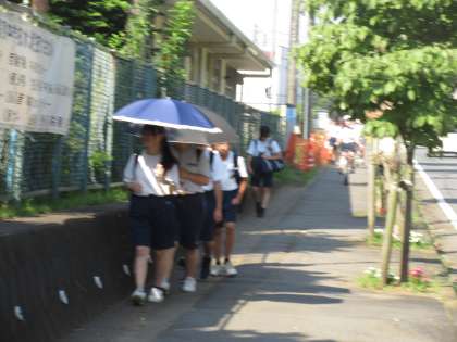 7月8日(月)朝の様子 公開日 2024/07/08 更新日 2024/07/08 お知らせ 夏の青空が広がる月曜日の朝を迎えています。熱中症対策で、日傘をさしたり、帽子を被ったりして登校する生徒も少しずつ多くなってきました。今日も熱中症等の体調管理に十分注意を払いながら、活動していきたいと思います!