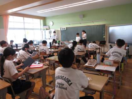 1年生の朝の教室の様子の続きです。担任の先生から、熱中症対策に関するメッセージが電子黒板に映し出されていました。熱中症に十分気を付け、1日を乗り切っていきましょう!