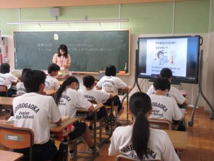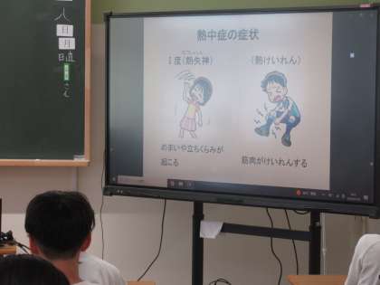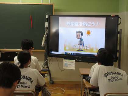 7月8日(月)朝の教室の様子 その4 公開日 2024/07/08 更新日 2024/07/08 お知らせ 2年生の朝の時間の続きです。時間が経つにつれ、朝の会が進められていきます。今日は、保健委員会の生徒たちが作成した「熱中症の動画」を見る時間が設けられていました。熱中症の症状や緊急時の対応、予防・・・など、今の時期にふさわしい内容でした。正しい知識を身に付け、熱中症をみんなで防いでいきましょう!