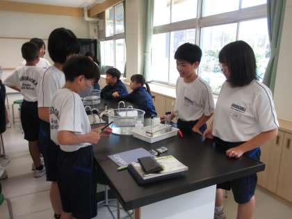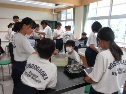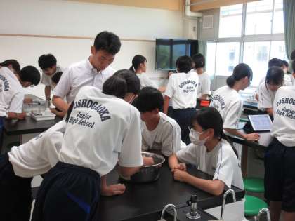 2時間目とは違うクラスが、「二酸化炭素」の実験に取り組んでいました。3時間目のクラスの生徒も、協力体制がバッチリでした!