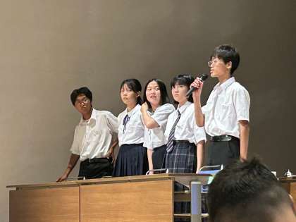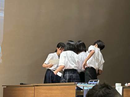 7月9日(火)市プレゼンテーションフォーラムでの活躍 その2 公開日 2024/07/09 更新日 2024/07/09 お知らせ プレゼンテーションフォーラムは、自分たちの考えをプレゼンするだけでなく、他の学校の生徒とコミュニケーションを図るシェアリングの時間もあります。相手に質問したり、相手の質問に答えたり、頑張っていました!
