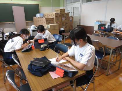 7月10日(水)放課後の様子【文芸部】 公開日 2024/07/10 更新日 2024/07/10 お知らせ 放課後の文芸部の活動の様子です。 3年生の生徒たちは、引退を意識する時期になってきました。文芸部の活動の集大成としての作品づくりにチャレンジ中でした。すてきなイラストの作品づくりにていねいに取り組んでいました!