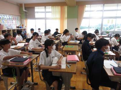 7月11日(木)今日の授業風景 その1 公開日 2024/07/11 更新日 2024/07/11 お知らせ 1年生の国語科の授業です。 6時間目の授業ですが、生徒たちは頑張っていました!教材文「オオカミを見る目」の学習で印象に残る言葉から、「印象を表す言葉」の世界を広げていこうとしていました。担当の先生が示す、様々な「動物」から、まずは印象を表す言葉を考えていました!