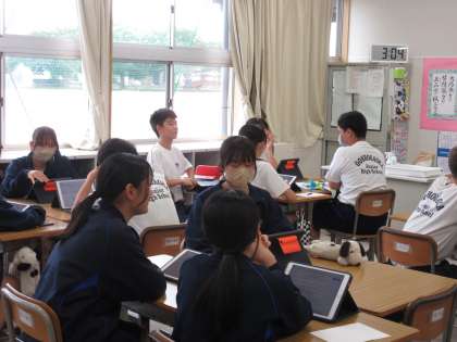 7月11日(木)今日の授業風景 その5 公開日 2024/07/11 更新日 2024/07/11 お知らせ 3年生の道徳科の授業です。 クラスをよりよくするための宣言文を考えていました。1人1人、すてきな宣言文を考えていました。「なかよく話す」「積極的に話しかける」「1日で全員と話す」「話しやすい雰囲気をつくる」・・・。すてきな宣言文でした。