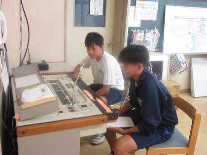 7月12日(金)給食の時間に・・・。【図書委員会】 公開日 2024/07/12 更新日 2024/07/12 お知らせ 現在、放送室が改修中のため、お昼の放送は休止中です。ですが、図書委員会の生徒が夏季休業中の本の貸し出しの話をするために、校長室を訪ね、お知らせの放送をしてくれました。(現在の放送委員も付き添ってくれています。)しっかり、自分の仕事をやりとげている生徒たちです!