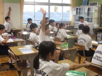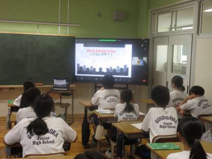 その高校生は、「スカラーズカップ(スカラーズ・カップはチームで、ディベート、小論文などで合計得点を競う大会)」で世界大会に進出した経験をもつ先輩です。「チャレンジすることの大切さ」「やるかやらないかなら、やる」など、自身の経験をもとに、夢を実現するためのモットーなどを話してくれました。貴重な経験を聞くことができたすてきな時間になりました。