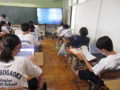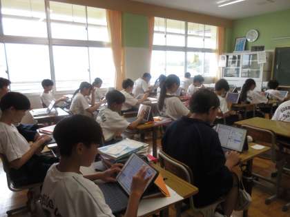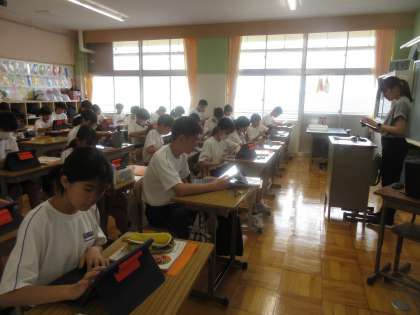 7月16日(火)今日の授業風景 その1 公開日 2024/07/16 更新日 2024/07/16 お知らせ 1年生の家庭科の授業です。 これまでの学習を活かし、1日の献立づくりをしているところでした。食材などの分量を表にまとめ、1日に必要な分量やバランスを考えた献立を考えていました。夏休みに実践してみる計画です。集中して作業に取り組む生徒たちです!