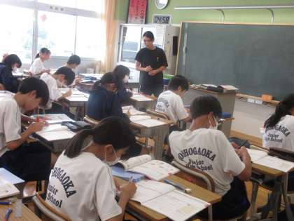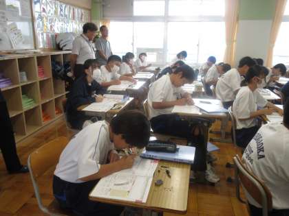 7月17日(水)今日の授業風景 その7 公開日 2024/07/17 更新日 2024/07/17 お知らせ 1年生の保健の授業です。 「調和のとれた生活」について学習を進めています。休養や睡眠の大切についてスライドを見ながら、イメージを広げていました。「心身の健康」をたもつための生活について考えを広げる生徒たちです。(学校運営協力員の皆様が授業参観をしてくださっています。)