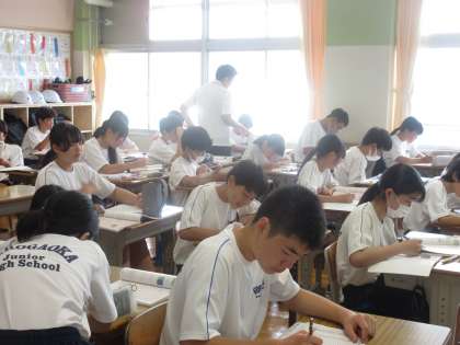 7月18日(木)今日の授業風景 その1 公開日 2024/07/18 更新日 2024/07/18 お知らせ 1年生の数学科の授業です。 「文字式の計算」の復習問題に取り組む生徒たち。ノートに順序よく計算を進める姿が見られました。夏季休業を前に、ていねいに「確かめ問題」を行い、学習の定着を目指す生徒たちです!