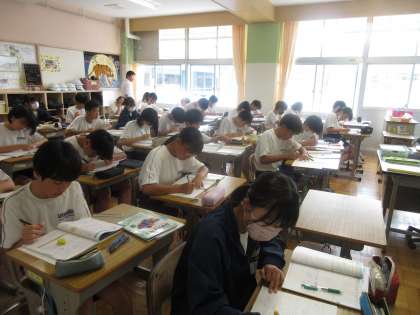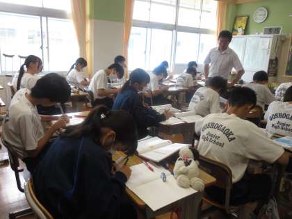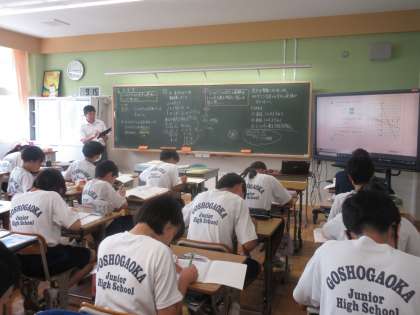 7月18日(木)今日の授業風景 その4 公開日 2024/07/18 更新日 2024/07/18 お知らせ 2年生の数学科の授業です。 「2つのグラフの交点の意味」について、学習を進めています。交点の座標の求め方について、イメージが広がったようです。2つの連立方程式の解が座標につながることを知り、熱心に問題にチャレンジする生徒たちの姿が見られました。頑張っていました!