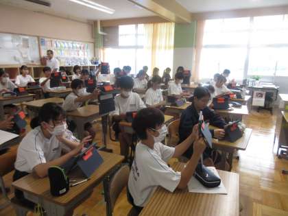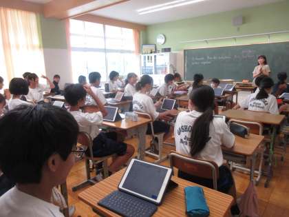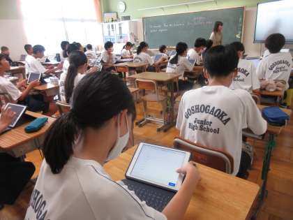 7月19日(金)今日の授業風景 その3 公開日 2024/07/19 更新日 2024/07/19 お知らせ 1年生の英語科の授業です。 4月からこれまでを振り返り、タブレットを活用した単語のテストにチャレンジしていました。チームごとに競い合いながら、そして、楽しみながら取り組む姿を見て微笑ましく思いました。しっかり振り返りをして、身に付けていってほしいです!