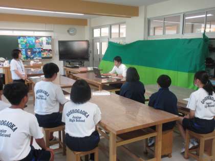学校長と生徒指導主事の先生からの話です。生徒指導主事の先生からは、「責任をもって行動すること」「自分の命は自分で守りこと」を中心に話をしていただきました。そして、悩みや不安があれば、相談できる場所があることを改めて話してくれました。よい、夏休みを過ごしてほしいです!