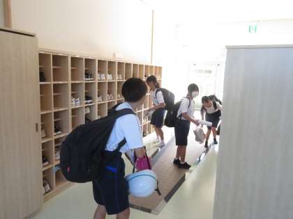8月26日(月)朝の様子 その3 公開日 2024/08/26 更新日 2024/08/26 お知らせ リニューアルされた昇降口を使う生徒たちの様子です!依然と自分の場所が異なり、ちょっと迷う場面も・・・。
