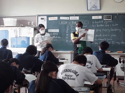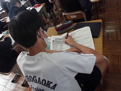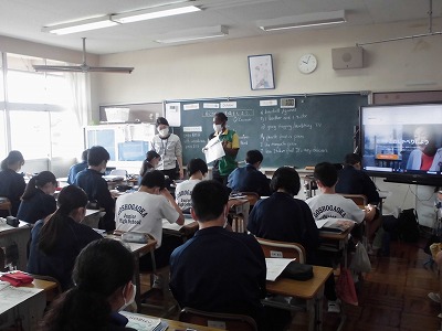 2年生の英語の授業です。今日は来週実施するDMMを活用した授業の準備を行っています。自己紹介の内容について検討しています。