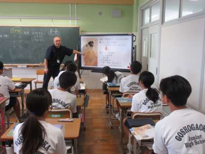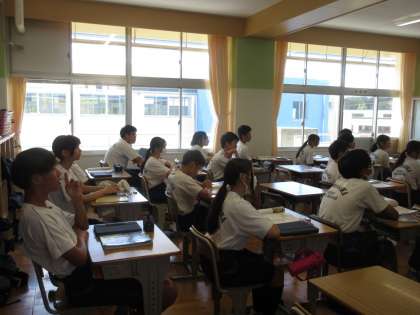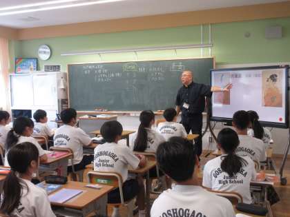 元禄文化について学習を進めていました。「浮世絵」を見ながら、現代のアイドルの写真集みたいなものだと考えながら、当時の文化へのイメージを広げていました。浮世絵で女性がふく「ポッピン」という玩具にも気付いていました。