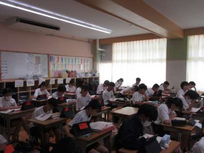 授業再開の最初の日。生徒たちは気持ちを切り替え、どの教室でも頑張る姿が見られる今日の御所ケ丘中学校です。