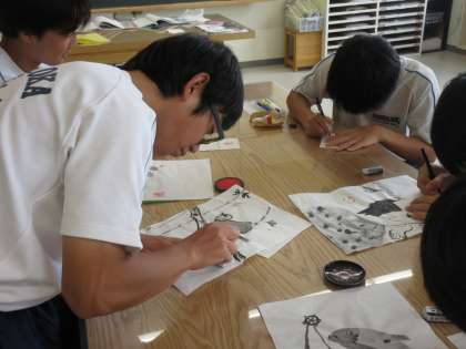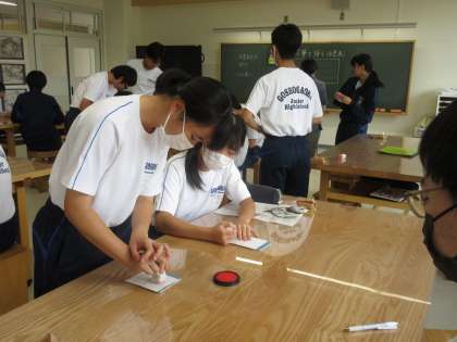 8月27日(火)今日の授業風景 その2 公開日 2024/08/27 更新日 2024/08/27 お知らせ 3年生の美術科の授業の続きです。 できあがった篆刻を見せてくれたグループもありました。また、押印にチャレンジする姿も見られました。もうすぐ作品の完成です!
