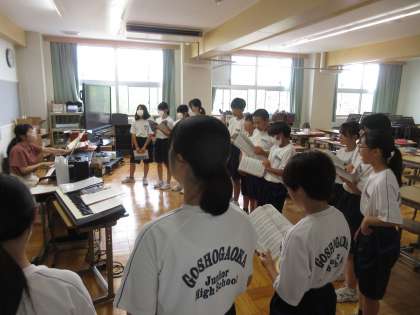 8月27日(火)今日の授業風景 その6 公開日 2024/08/27 更新日 2024/08/27 お知らせ 1年生の音楽科の授業です。 パートごとに別れ、合唱練習に取り組んでいました。歌う姿勢と呼吸を意識しながらの合唱練習です。パートごとに、しっかり練習に取り組む姿がとてもよかったです!素敵な歌声が響いていました。