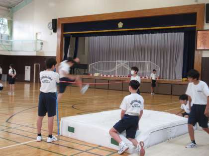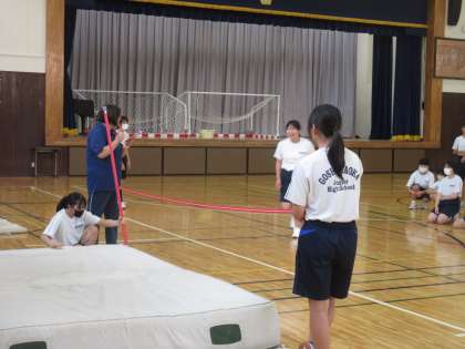 8月27日(火)今日の授業風景 その7 公開日 2024/08/27 更新日 2024/08/27 お知らせ 2年生の体育科の授業です。 エアコンの効いた体育館。3つの場所に別れて、高跳びの練習に取り組んでいました。それぞれの場所で、協力し合い、そして励まし合って、より高い目標に向かって頑張る姿が見られました!