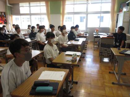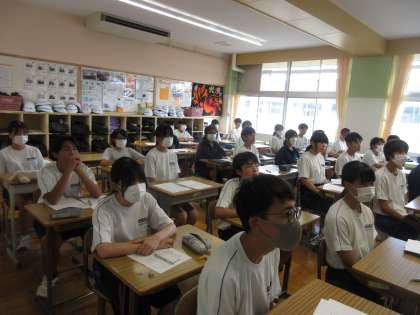 2年生は、明日から職場体験学習が始まります。その事前指導が実施されました。学年主任の先生から「御所中生として」「感謝の気持ちをもち」「分からないことはそのままにせず」職場体験をしっかりやりとげてほしいとの話を聞きました。オンラインでの事前指導でしたが、生徒たちの話を聞く真剣な姿がとてもよかったです!(どのクラスも真剣な表情で話を聞く生徒たちの姿が見られました。)よい職場体験になると確信しました。頑張ってきてほしいです!