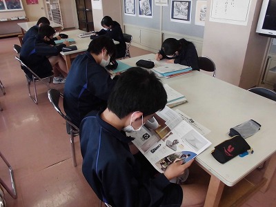 3年生の美術です。今日は,全校展示に向けてのイメージ画の作製に取り組んでいます。頑張って!