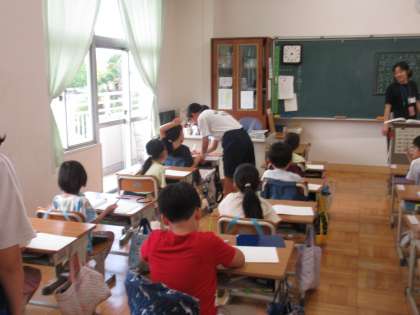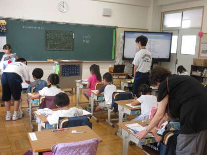 御所ケ丘小学校での職場体験の様子です!先生の補助を熱心に行う姿が印象的でした。