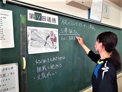 3年生の道徳の授業です。今日の内容項目は「希望と勇気,克己と強い意志」についてです。「片足のアルペンスキーヤー三澤 拓さん」の生き方を題材にして議論しています。