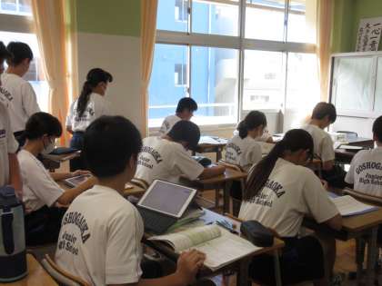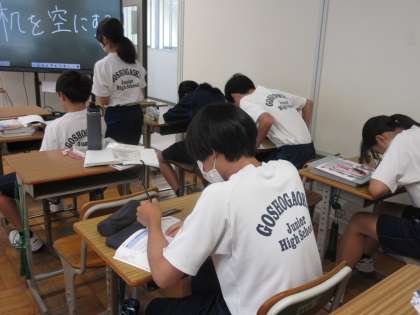 2年生の朝の会前の教室の様子です。テスト前の最終確認をしている生徒、心を落ち着かせる生徒・・・など、テスト前の準備が進む2年生の教室です!