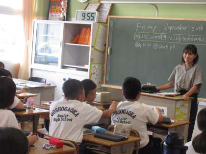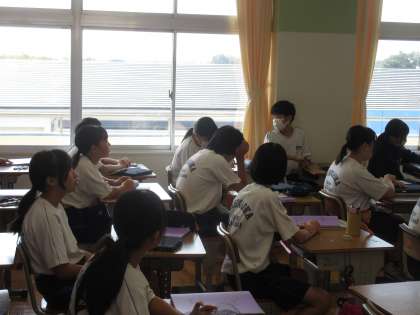 9月6日(金)今日の授業風景 その1 公開日 2024/09/06 更新日 2024/09/06 お知らせ 1年生の英語科の授業です。 「好きなことや得意なことを伝えられるようになろう?」という課題のもと学習に取り組む生徒たち。担当の先生との英語のやりとりでイメージを広げていました。代表の生徒の受け答えを周りの生徒が温かく見守る姿がよかったです!