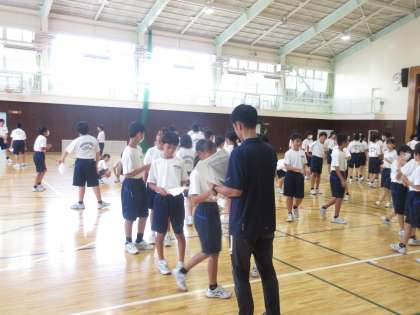 9月6日(金)今日の授業風景 その7 公開日 2024/09/06 更新日 2024/09/06 お知らせ 1年生の体育科の授業です。 体育館を訪ねたときは、前期期末テスト(技能)のテスト返却が行われているところでした。技能教科のテストにも全力を出した1年生。テストの結果を今後に生かしていってほしいです!