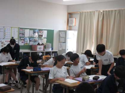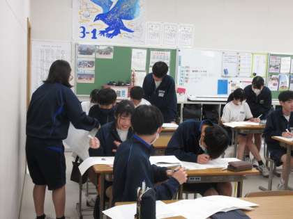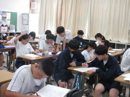 9月6日(金)今日の授業風景 その9 公開日 2024/09/06 更新日 2024/09/06 お知らせ 3年生の数学科の授業です。 前期期末テストが返却され、その振り返りに取り組んでいました。近くの友達と解き方の確認を熱心に行う姿が多く見られました。友達との考えの交流を通して、身に付けていってほしいです。