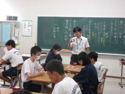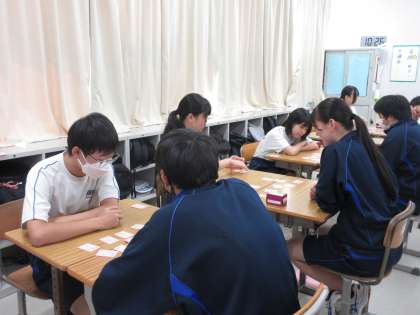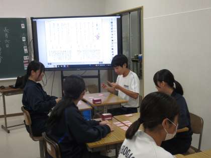 9月6日(金)今日の授業の様子 その11 公開日 2024/09/06 更新日 2024/09/06 お知らせ 3年生の国語科の授業です。 「百人一首」に笑顔で取り組む生徒たちの姿を見て、思わず写真をたくさん撮ってしまいました。生徒たち、1枚でも多く取ろうと頑張っていました!