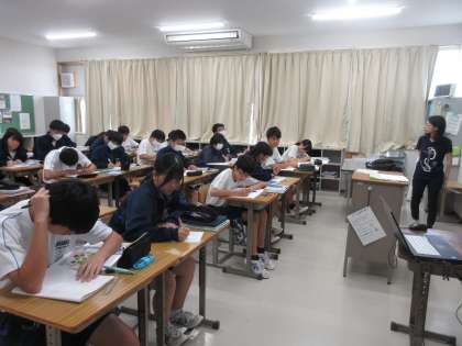 9月9日(月)今日の授業風景 その1 公開日 2024/09/09 更新日 2024/09/09 お知らせ 3年生の理科の授業です。 新しい単元「生物どうしのつながり」の学習に入る場面でした。教科書の1枚の写真から、これからの学習への見通しをもつ生徒たち。知っていることやこれまでの学習を活かしながら、自分の考えを発表していました。