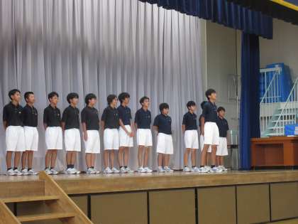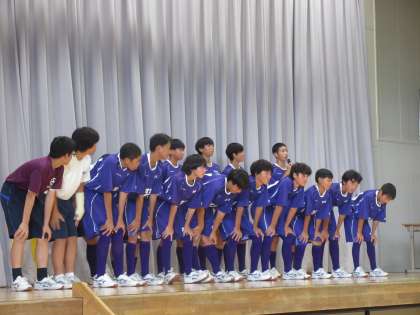 5時間目に行われた「新人戦壮行会」!生徒たちが主体で素晴らしい行事になりました!写真は、男子ソフトテニス部・女子バスケットボール部・サッカー部です!
