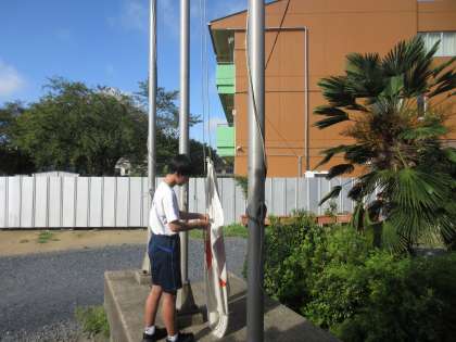 9月10日(火)国旗等の掲揚台では・・・。 公開日 2024/09/10 更新日 2024/09/10 お知らせ 毎朝、本校の掲揚台では生徒たちが分担して、国旗・市旗・校旗が掲揚されています。今日は、旗をあげている生徒の姿を見かけたので、写真を撮らせてもらいました。いつも、様々なところでしっかり自分の役割を果たす生徒たちです!