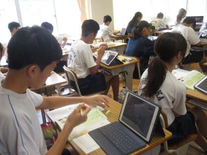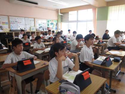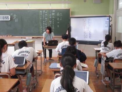 9月10日(火)今日の授業風景 その3 公開日 2024/09/10 更新日 2024/09/10 お知らせ 2年生の国語科の授業です。 「郷土のよさを伝えよう」というテーマのもと、これからの学習のねらいを確認していました。「地域の魅力の紹介文」を書くために、どんな材料を集め、相手に伝わるように文章を工夫していくか、楽しみです!