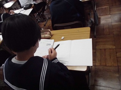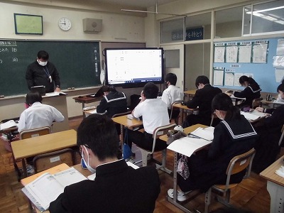 2年生の数学の授業です。今日は,様々なグラフを読み取って問題を解いています。みんな一生懸命問題に向き合っています。頑張れ!