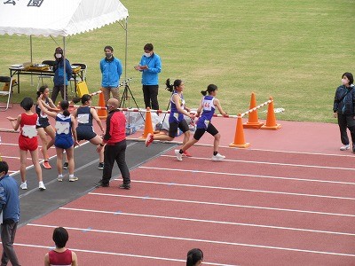 女子の続きです。第4走者も力走を継続です。第5走者アンカーに襷が渡りました。前だけを見て走り順位を上げましたが,県駅伝への出場権をいただくことは出来ませんでした。頑張った!