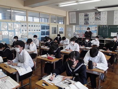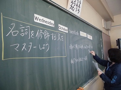 3年生の英語の授業です。今日は,名詞を修飾する文について学んでいます。マスターできるように自分なりに表現方法をまとめています。頑張って!