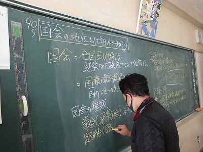 3年生の社会の授業です。公民分野です。今日は,国会の地位と仕組みについて考えています。31日に衆議院選挙があります。タイムリーな学びです。