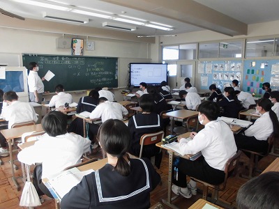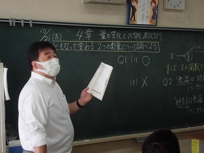 1年生の数学の授業です。今日は,ともなってかわる2つの数量関係について学んでいます。関数です。