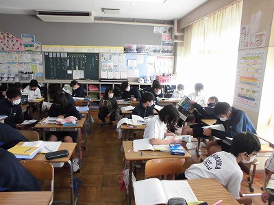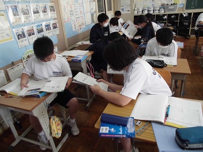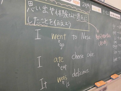 1年生の英語の授業です。今日は,過去形について学んでいます。思い出や過去にしたことを過去形を活用して表現し合っています。