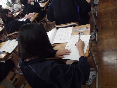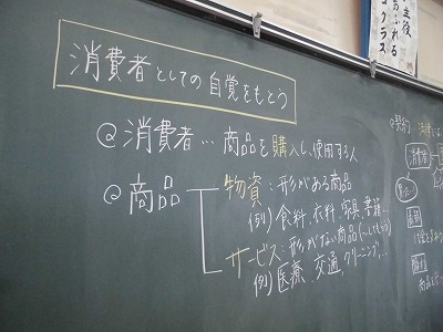 1年生の家庭科の授業です。今日は,「消費者の自覚」について学んでいます。消費者として必要な知識や関わり方についてです。みんな真剣に考えていました。