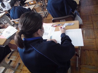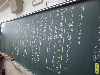 1年生の国語の授業です。伊曽保物語の読み取りです。今日は,物語がどのジャンルかを知った上で,どのように読み取っていくかを思考していました。
