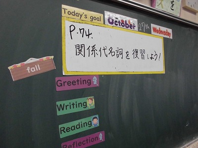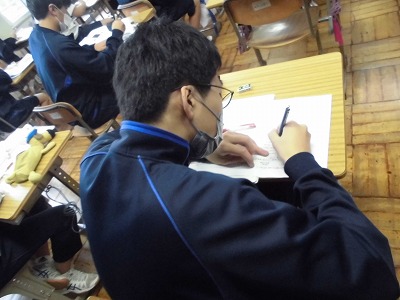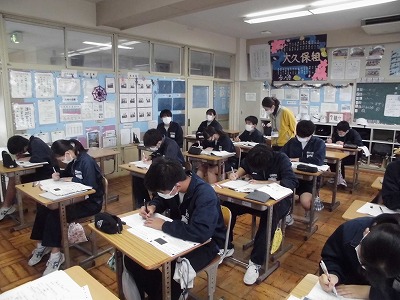 3年生の英語の授業です。関係代名詞の復習を進めています。それぞれが一生懸命取り組んでいます。頑張れ!
