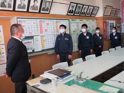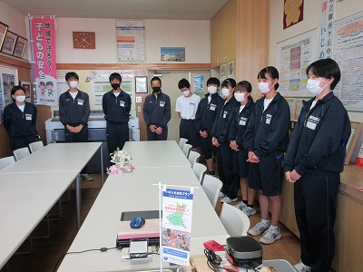本日の昼休み,先週末に行われた市新人代替大会と県新人大会の結果報告に,各部代表者が校長室へ訪れました。私(校長)からは,各部代表者から結果報告後に労いと頑張った点についてそれぞれの部に伝えました。最後に,新人戦は通過点であり課題を明確にして今後しっかり取り組むことが大切であることをお話ししました。精進あるのみです。
