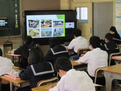 1年生の総合的な学習の時間です。今日は、先週に引き続き,「職業人インタービュー」として、守谷市役所企画課にお勤めの方をお迎えして話をしていただきました。守谷ビールを開発した方で,御所ケ丘中学校では,その原料となるホップを栽培しているため,御所ケ丘中学校との関わりなどもお話ししてくださいました。また,質問コーナーでは,日頃心がけていることややりがい,現在の目標など,さまざまな質問が出ましたが,一つ一つ丁寧に答えてくださいました。