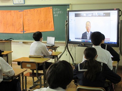 朝の会後,実行委員が中心となり解散式を行いました。視聴覚室をスタジオにしてzoomで各教室を繋ぎました。