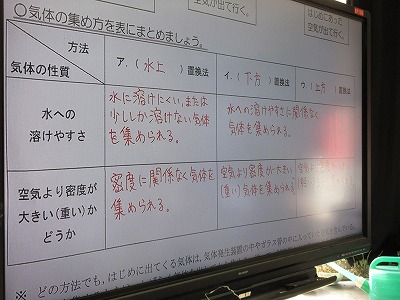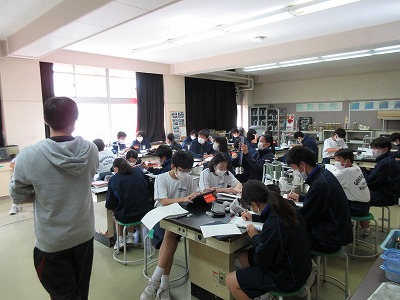 1年生の理科の授業です。科学分野です。今日は,酸素にはどのような性質があるかについて考えています。この後,実験を通して実感を伴う理解につなげます。