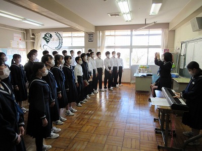 帰りの会後,各学級ごとに最後の合唱練習に取り組んでいます。明日,素晴らしいハーモニーが御所ケ丘中学校に響き渡ることと思います。